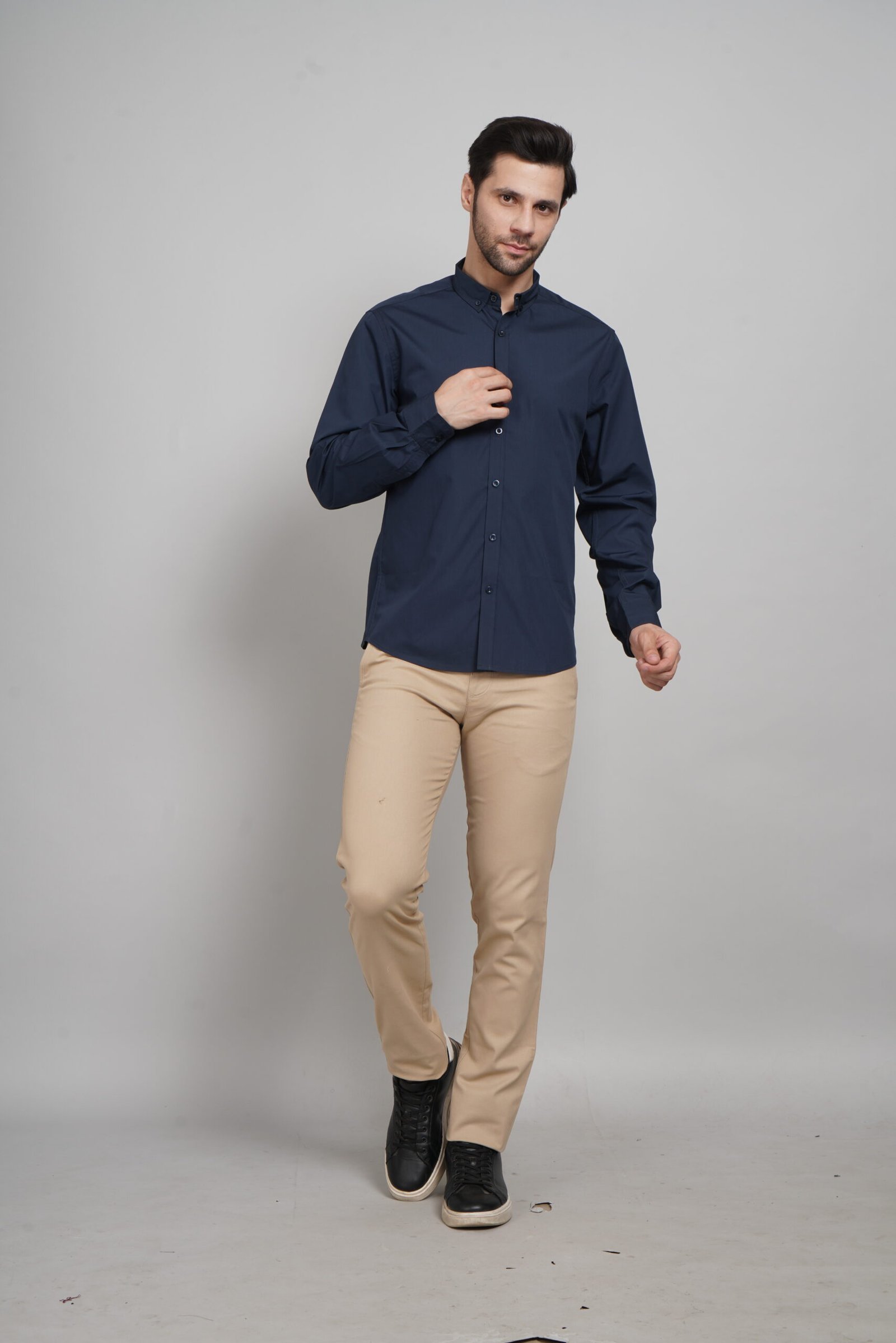 Whether paired with chinos for a relaxed weekend vibe or tucked into formal trousers for the office, the Dark Blue Shirt is your go-to choice for effortless elegance.